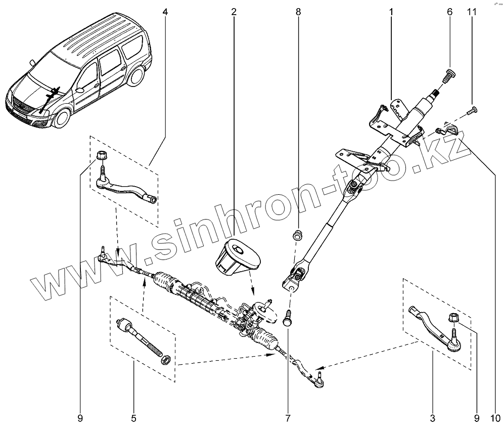 Каталог запасных частей к технике: ВАЗ LADA Largus 4601. Вал рулевого управления, тяги