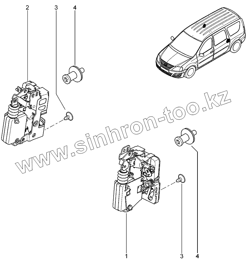 Каталог запасных частей к технике: ВАЗ LADA Largus 4601. Замки задних дверей