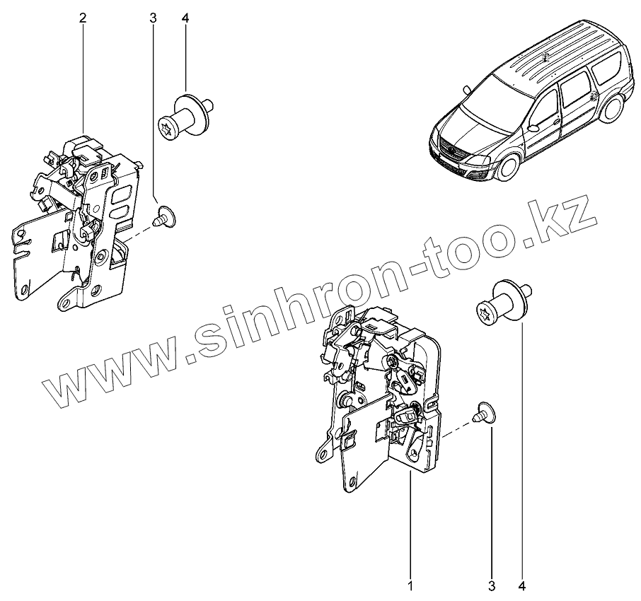 Каталог запасных частей к технике: ВАЗ LADA Largus 4601. Замки задних дверей