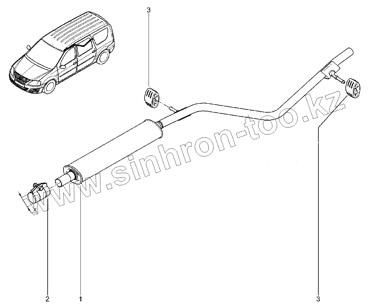Каталог запасных частей к технике: ВАЗ LADA Largus CROSS. 144110. Глушитель дополнительный (K4M)
