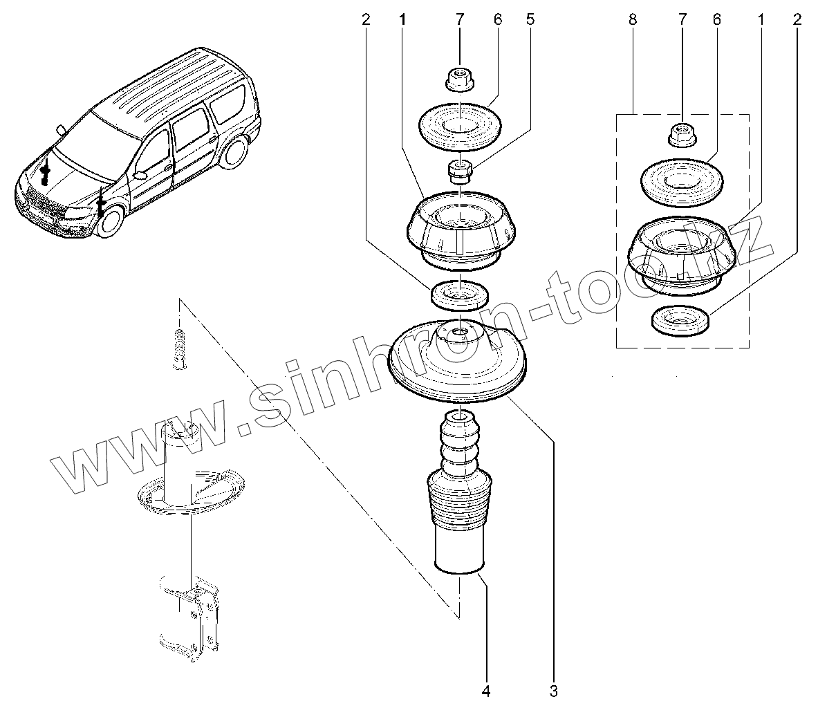 Каталог запасных частей к технике: ВАЗ LADA Largus CROSS. 315110. Опора передней стойки