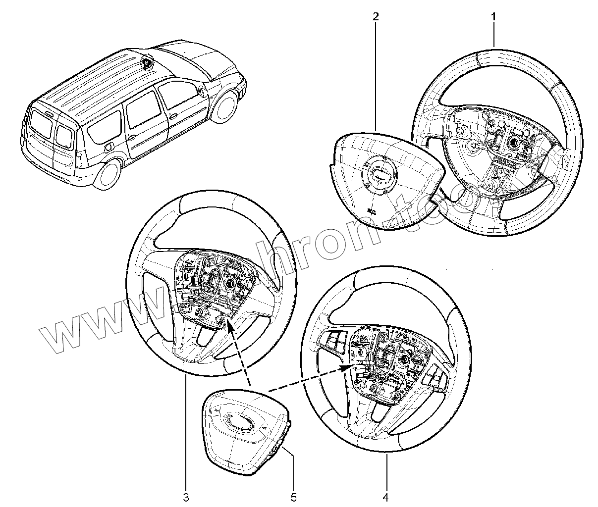 Каталог запасных частей к технике: ВАЗ LADA Largus CROSS. 355110. Рулевое колесо с НПБ