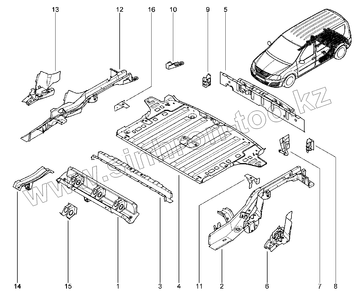 Каталог запасных частей к технике: ВАЗ LADA Largus CROSS. 414010. Элементы нижние багажника