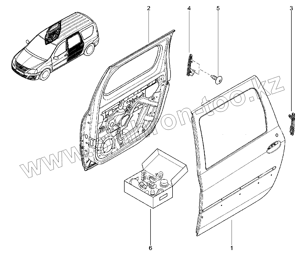 Каталог запасных частей к технике: ВАЗ LADA Largus CROSS. 461110. Двери задние