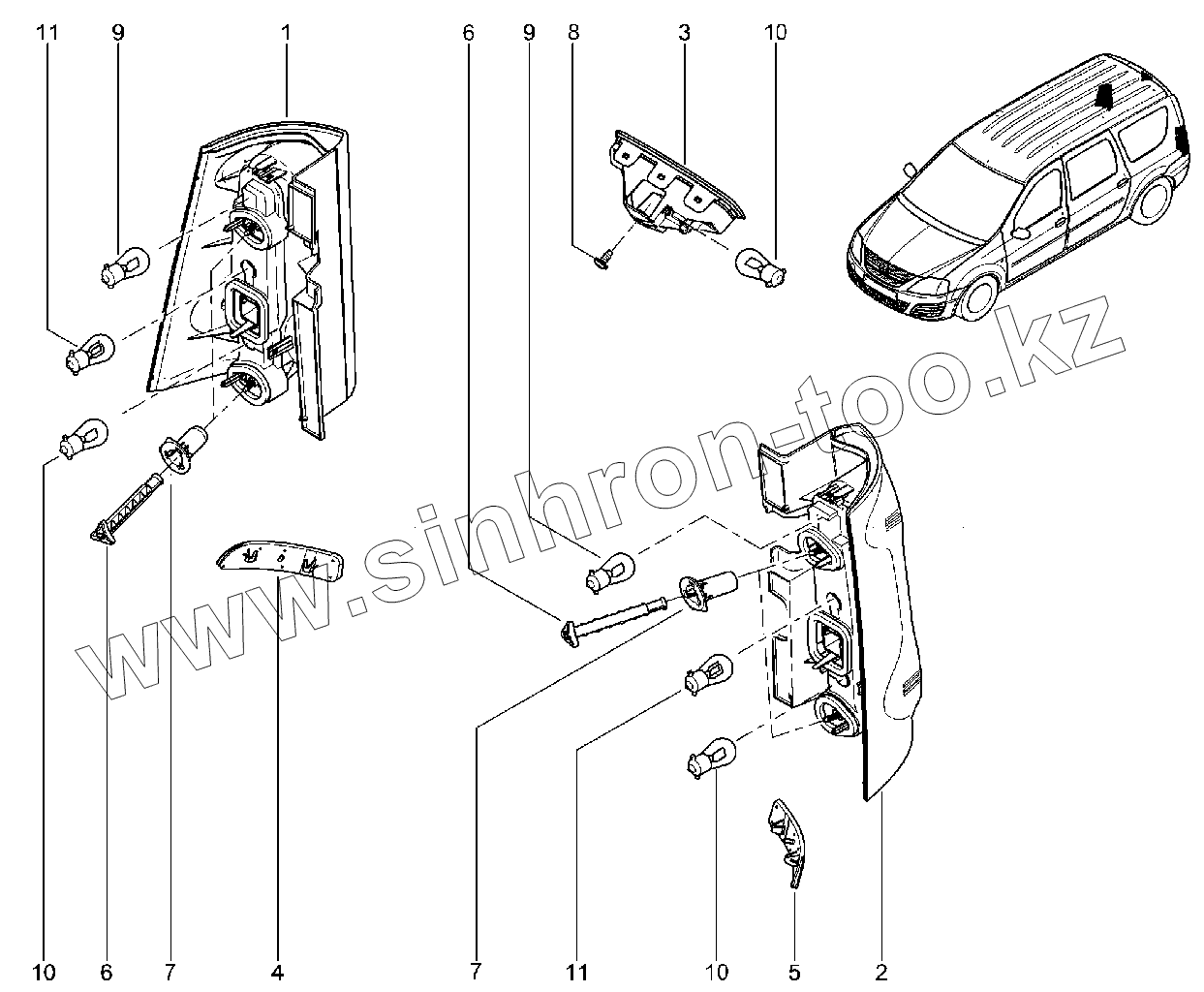 Каталог запасных частей к технике: ВАЗ LADA Largus CROSS. 804110. Фонари задние