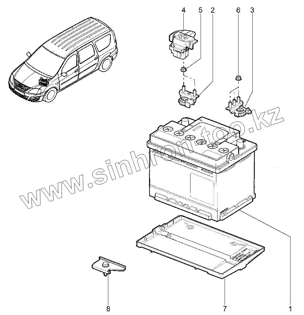 Каталог запасных частей к технике: ВАЗ LADA Largus FL. Батарея аккумуляторная (FL)