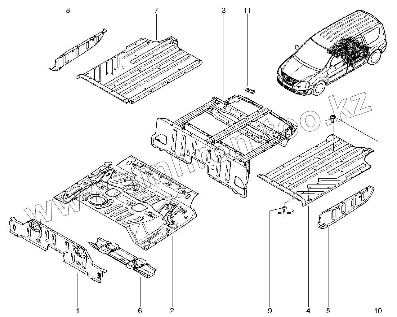 Панель пола средняя в сборе