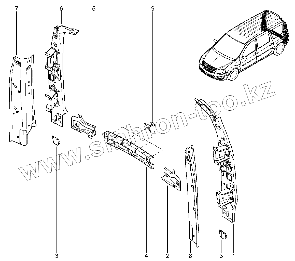 Каталог запасных частей к технике: ВАЗ LADA Largus FL. Каркас заднего проема дверей