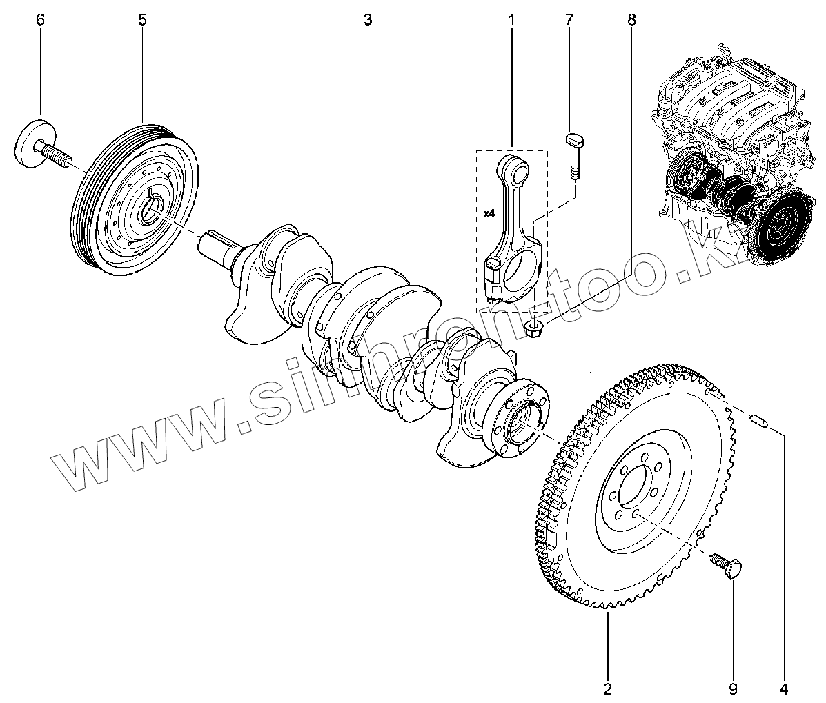 Каталог запасных частей к технике: ВАЗ LADA Largus FL. Коленвал, маховик, шатун (K4M)