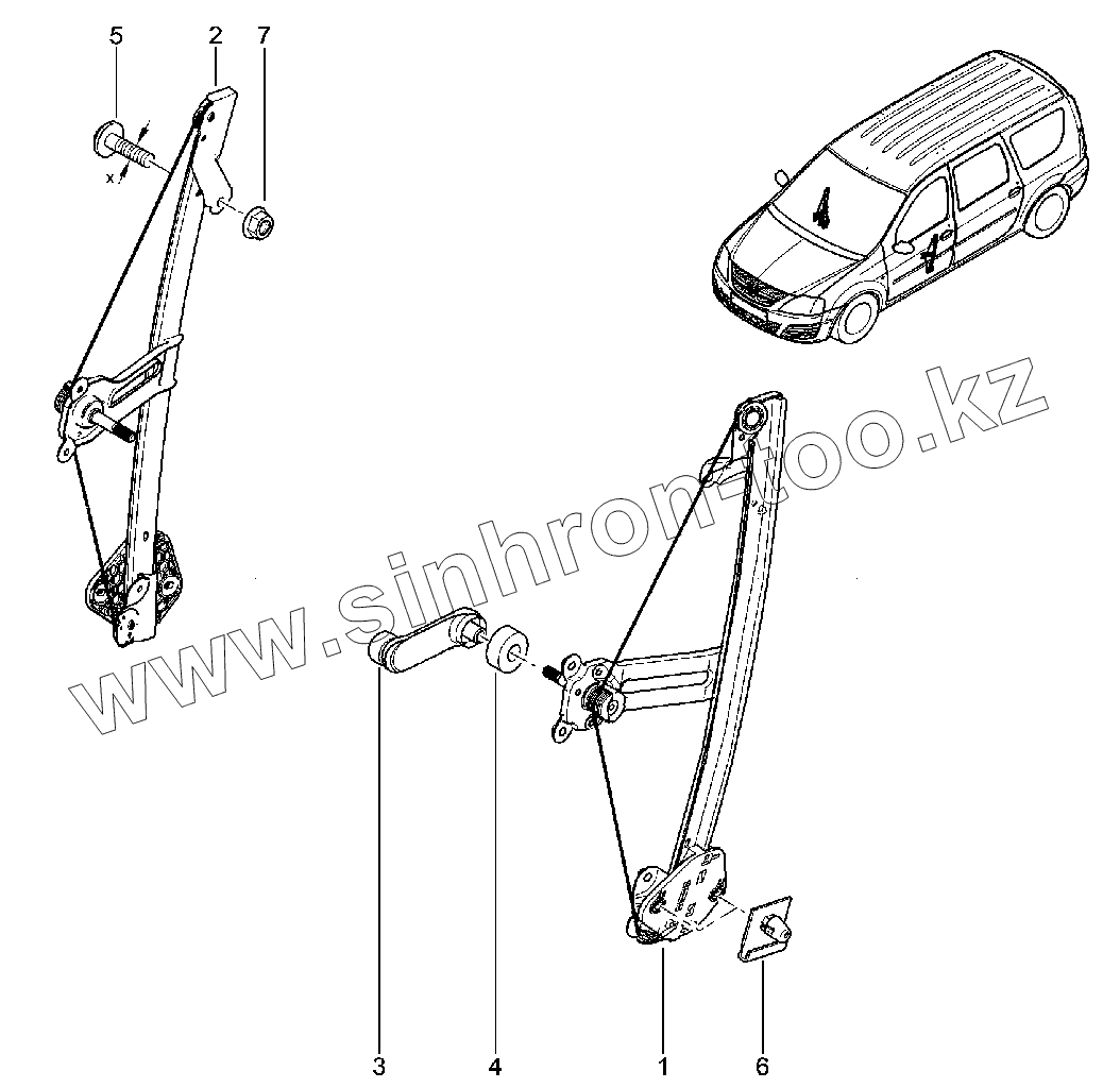 Каталог запасных частей к технике: ВАЗ LADA Largus FL. Механические стеклоподъемники передних дверей