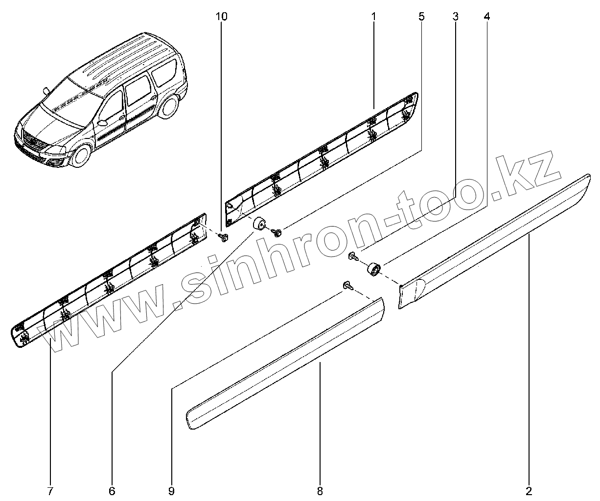 Каталог запасных частей к технике: ВАЗ LADA Largus FL. Молдинги дверей
