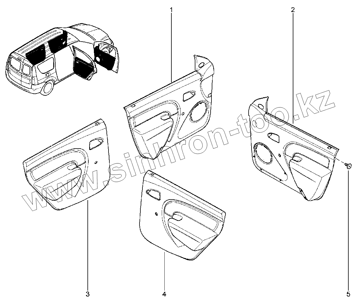 Каталог запасных частей к технике: ВАЗ LADA Largus FL. Обивки дверей (универсал)