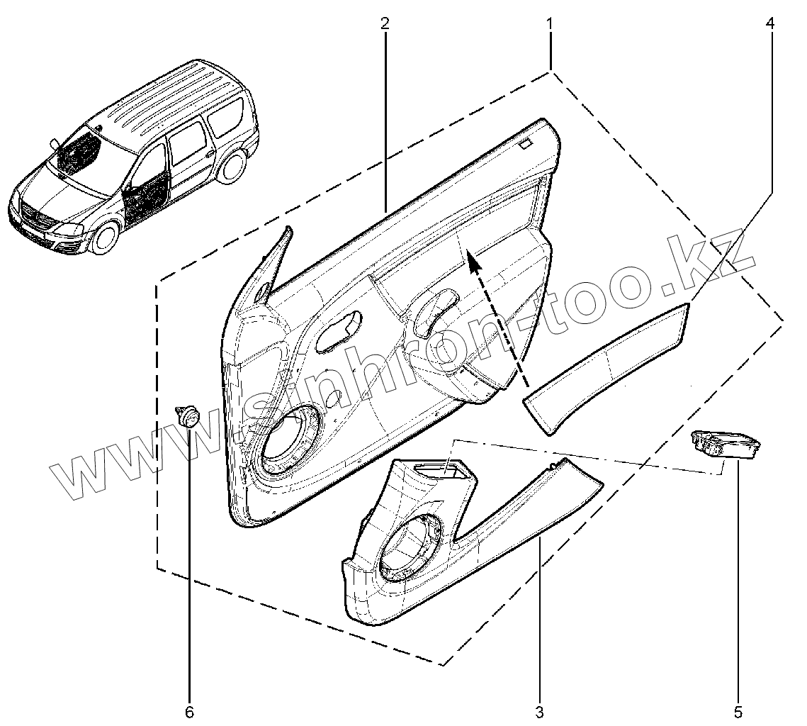 Каталог запасных частей к технике: ВАЗ LADA Largus FL. Обивки передней двери (FL)