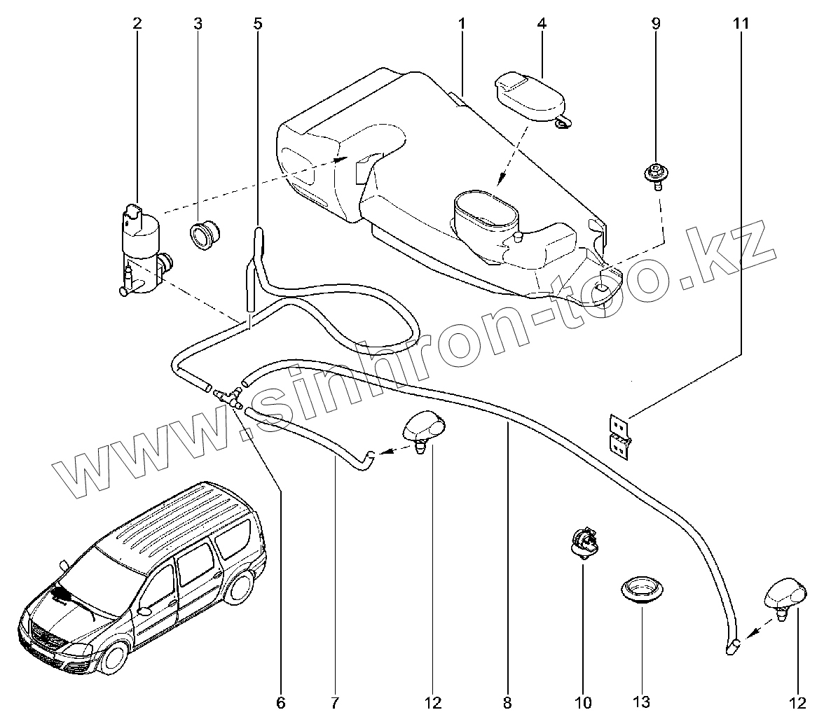 Каталог запасных частей к технике: ВАЗ LADA Largus FL. Омыватель (фургон)