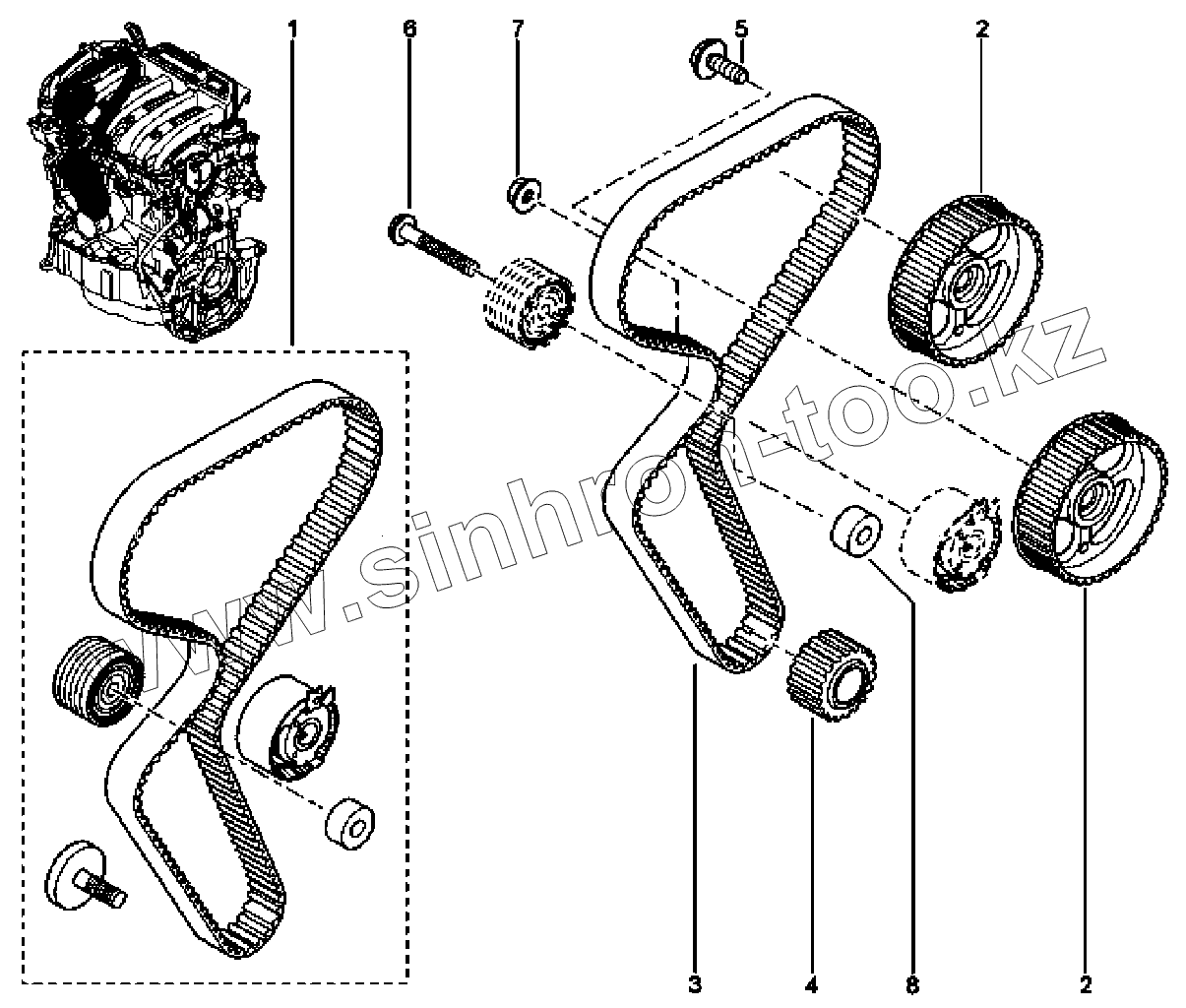 Каталог запасных частей к технике: ВАЗ LADA Largus FL. Привод ГРМ (K4M)