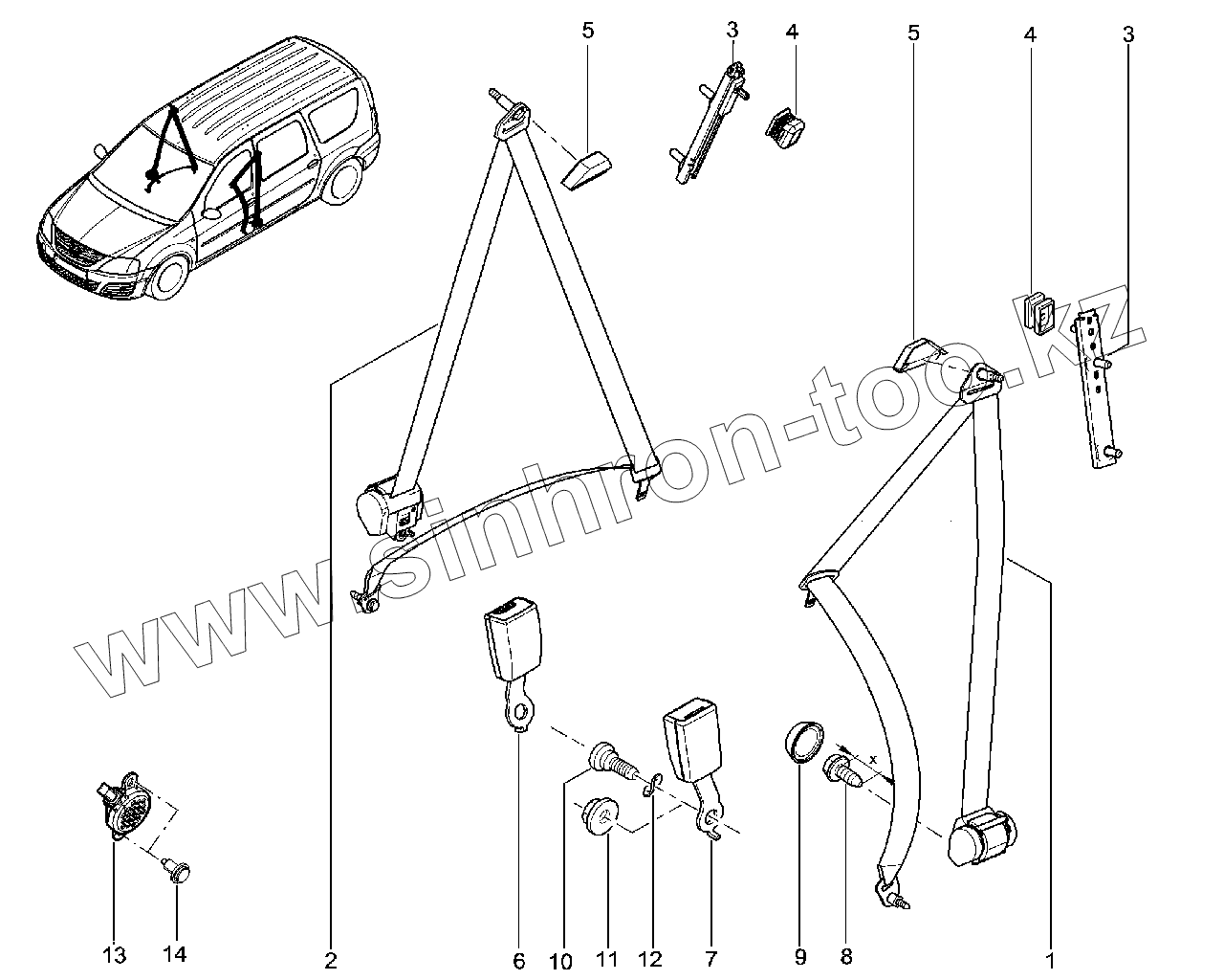 Каталог запасных частей к технике: ВАЗ LADA Largus FL. Ремни безопасности передние