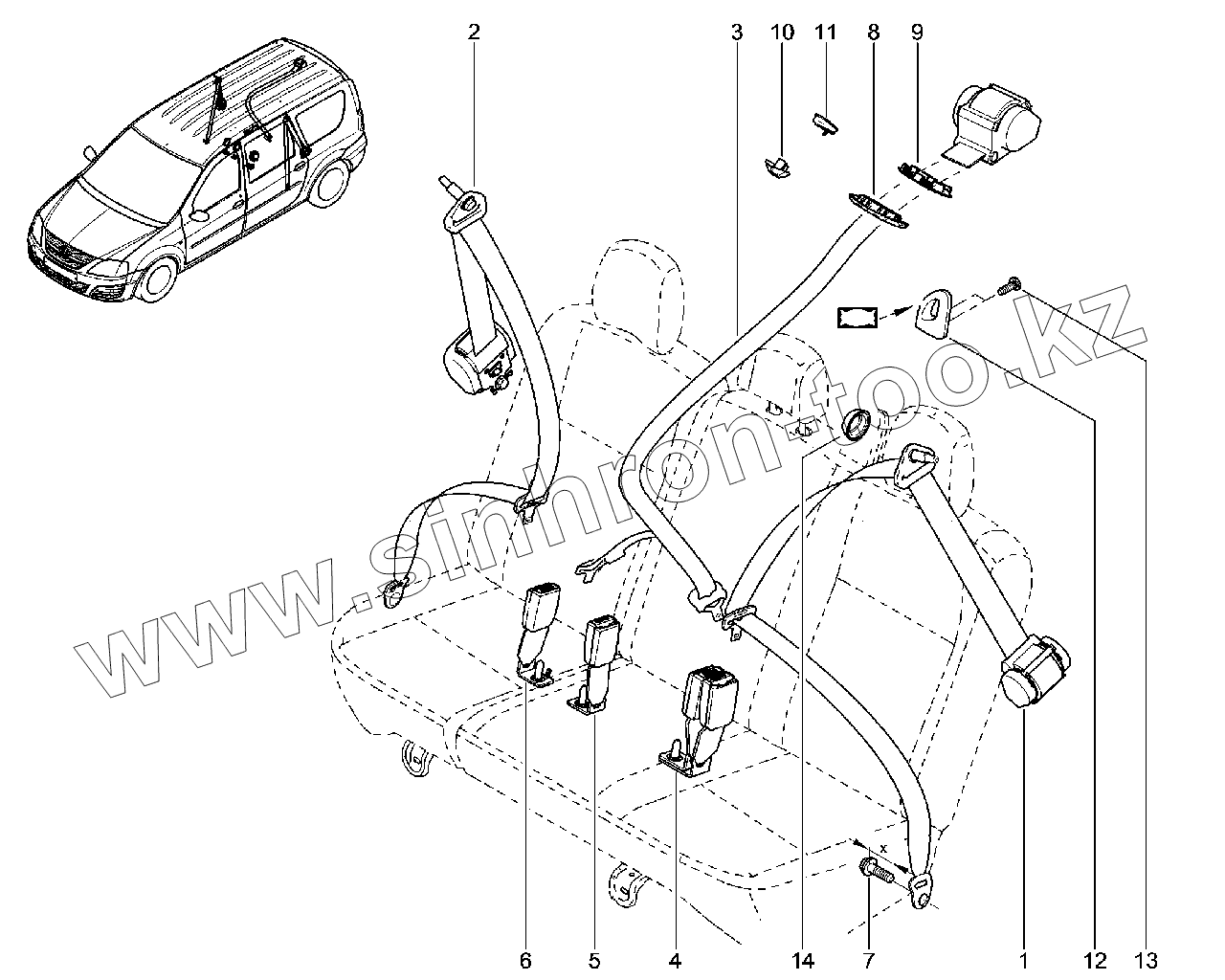 Каталог запасных частей к технике: ВАЗ LADA Largus FL. Ремни безопасности задние