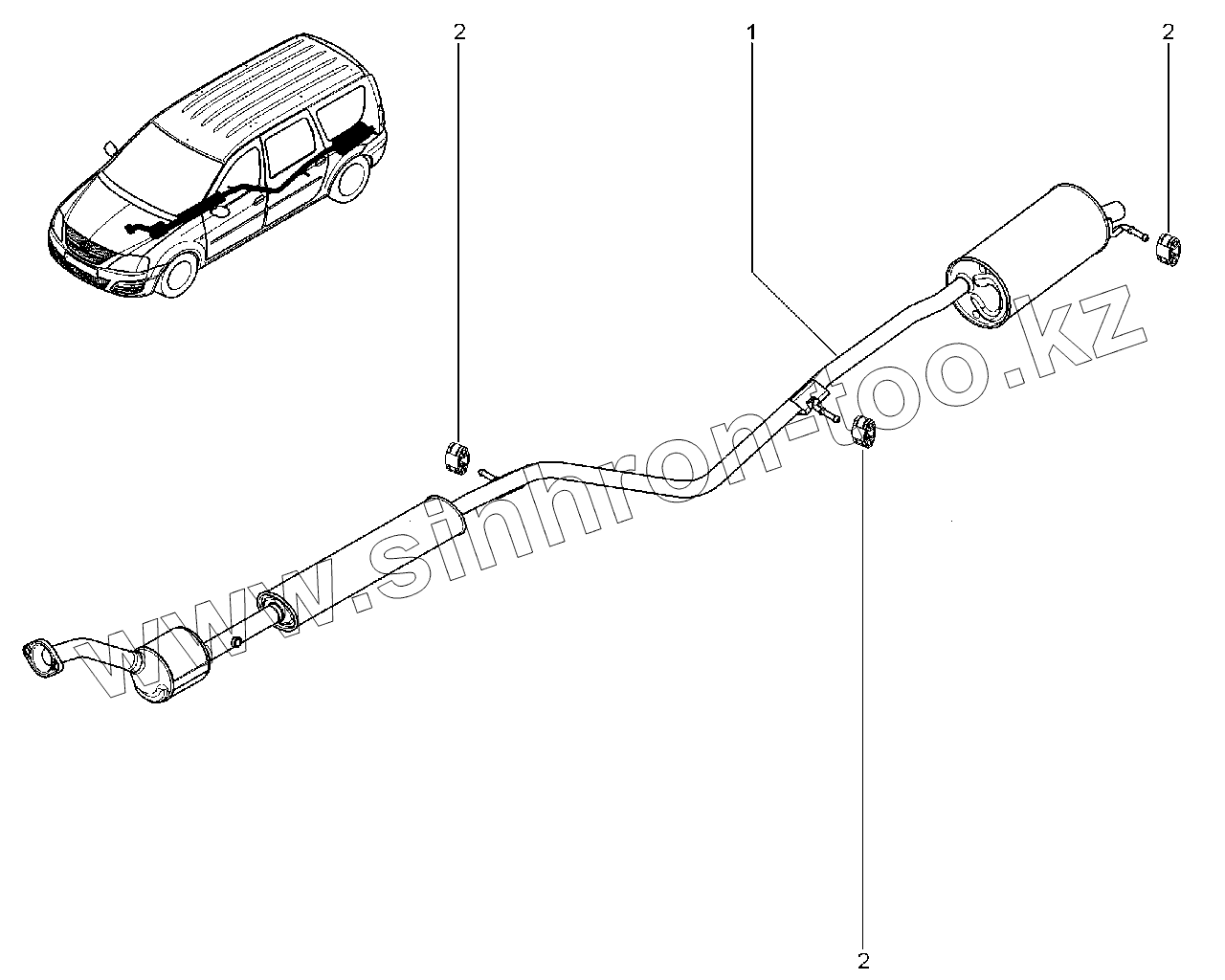 Каталог запасных частей к технике: ВАЗ LADA Largus FL. Система выпуска (K4M, K7M)