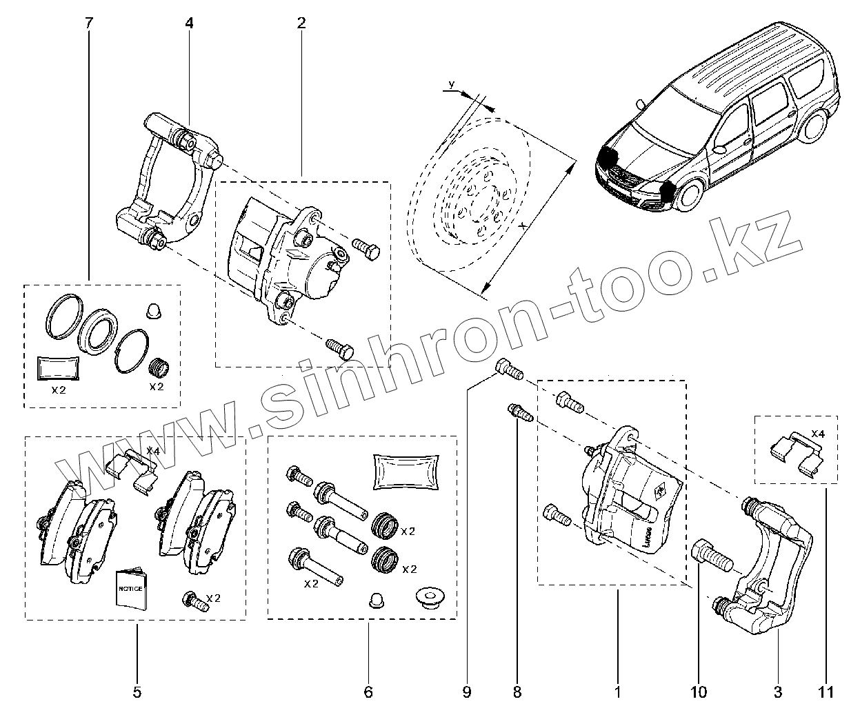 Каталог запасных частей к технике: ВАЗ LADA Largus FL. Тормоз передний (K7M)