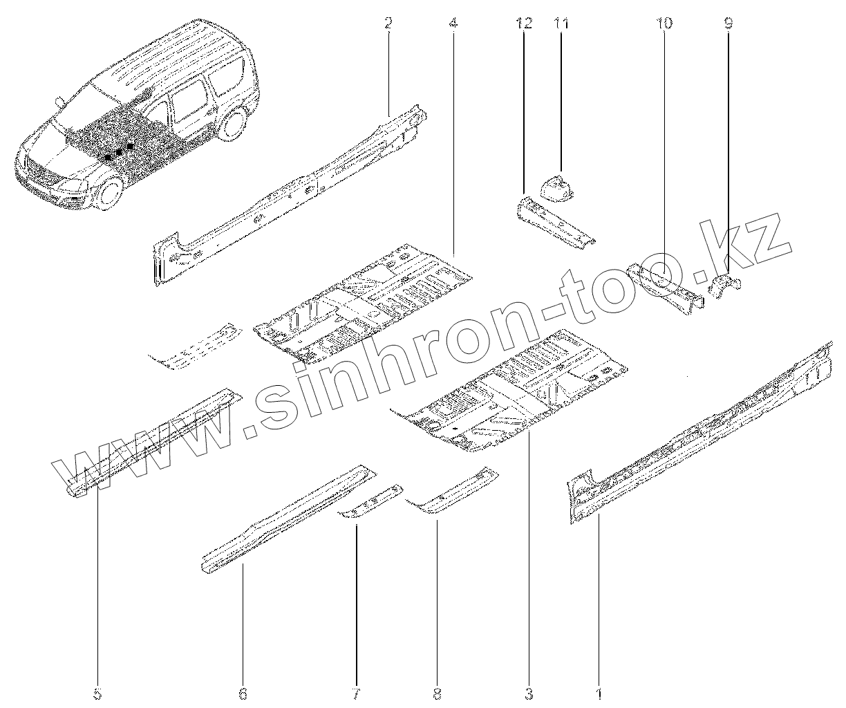 Каталог запасных частей к технике: ВАЗ LADA Largus FL. 412010. Элементы нижние средние