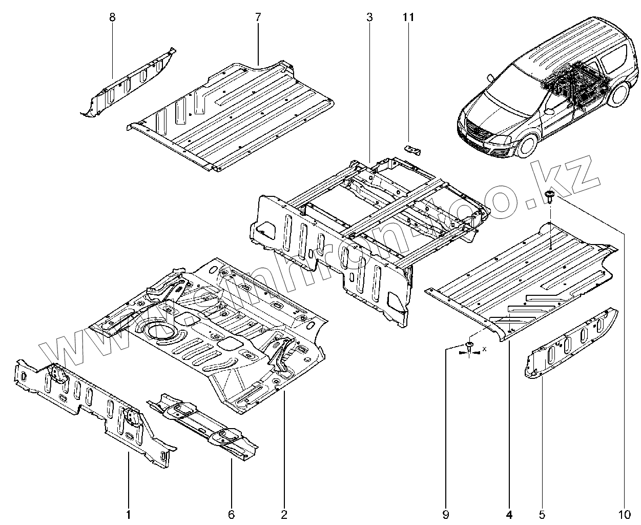 Каталог запасных частей к технике: ВАЗ LADA Largus FL. 413010. Злементы нижние задние