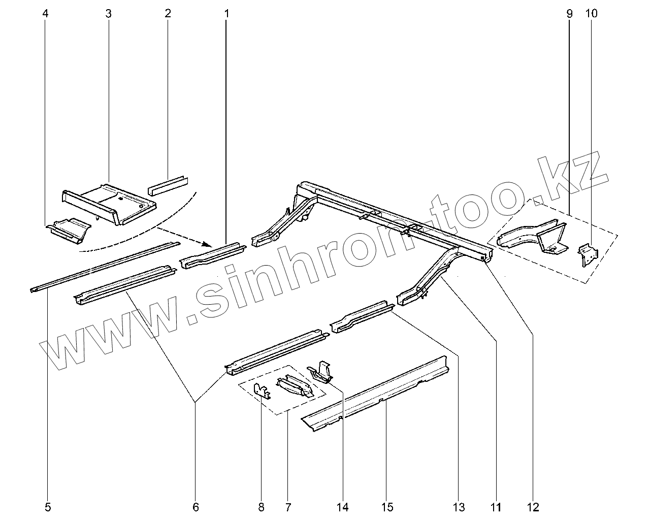 Поперечина пола задняя с лонжеронами в сборе