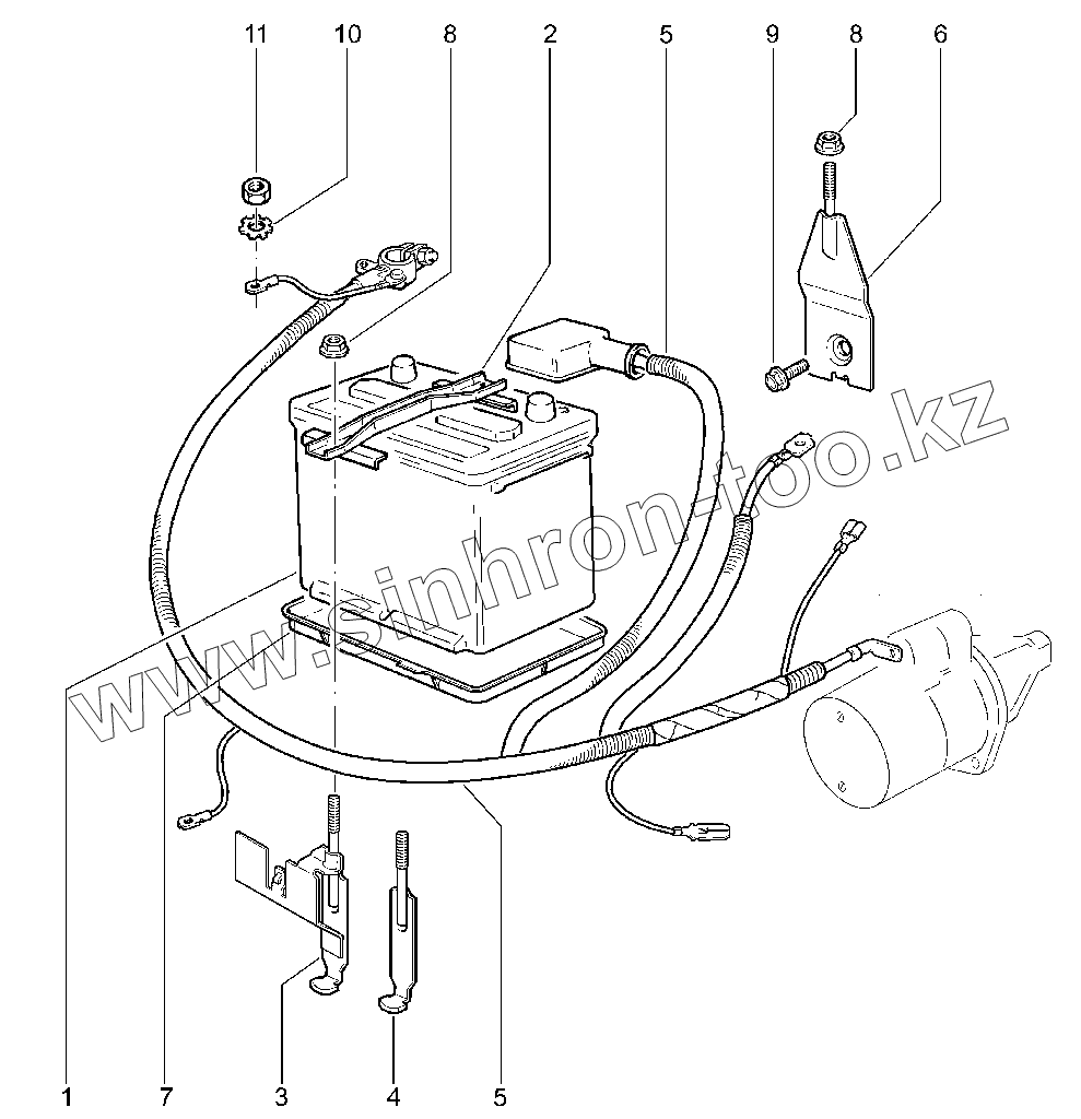 Провод стартера и аккумуляторной батареи