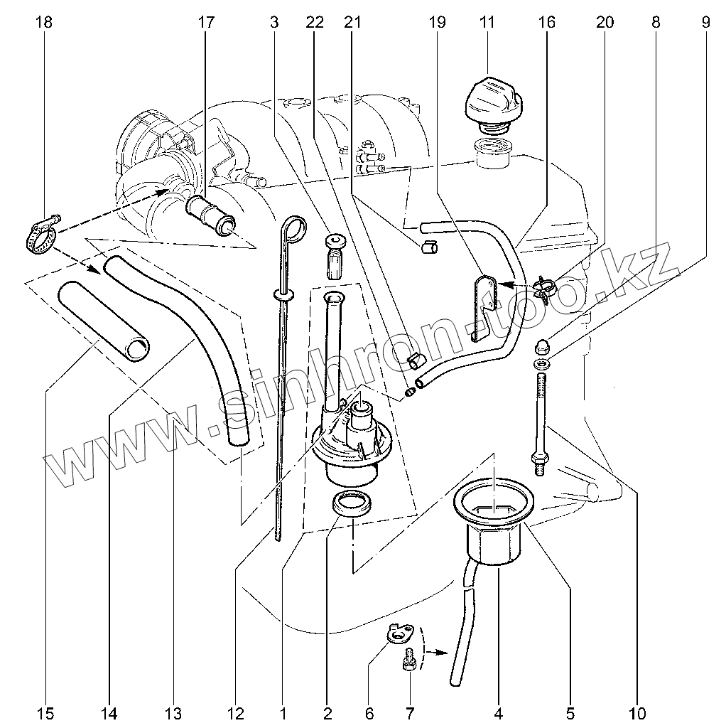 Каталог запасных частей к технике: ВАЗ LADA Niva Travel. Маслоотделитель, трубки вентиляции картера