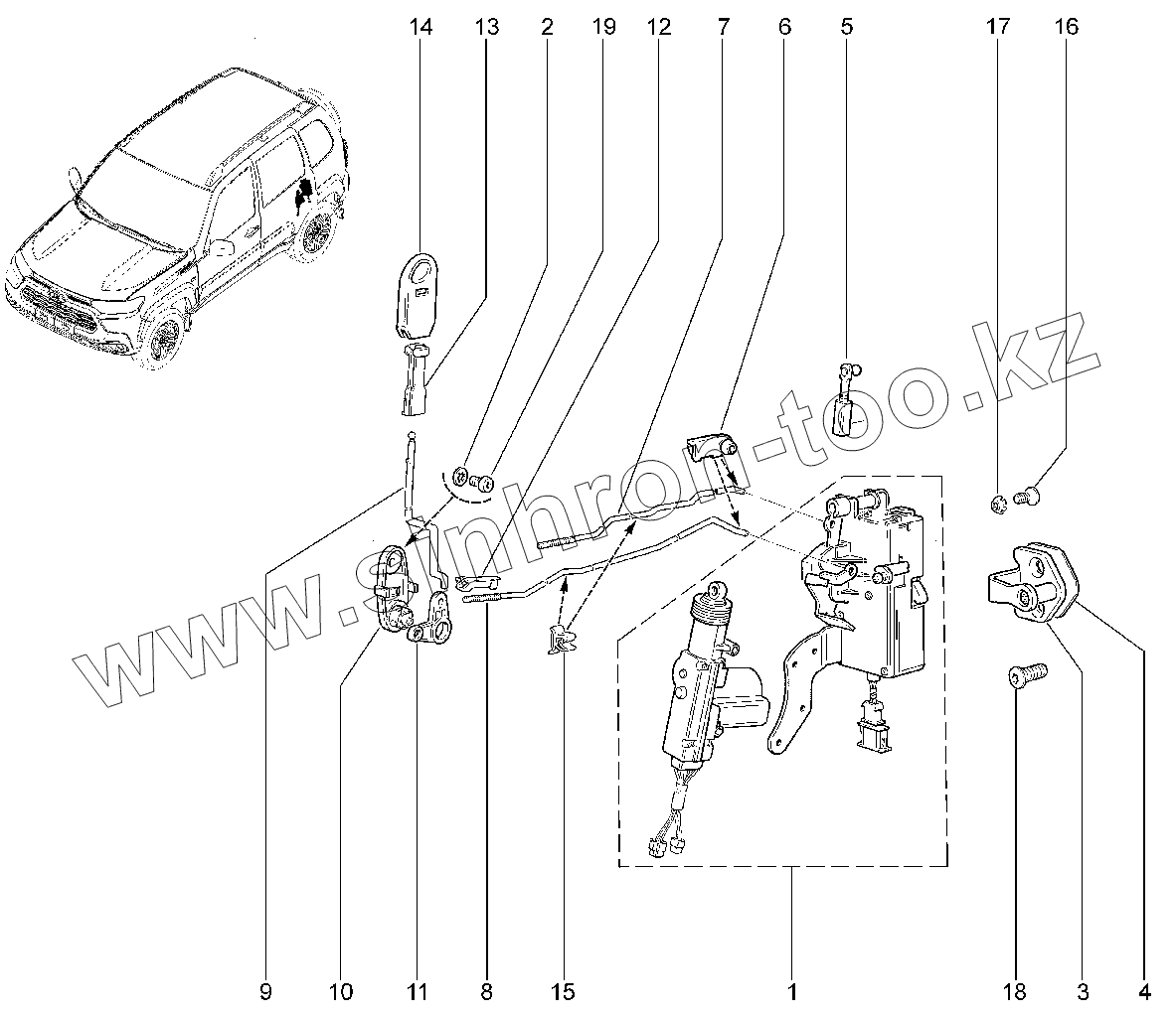 Каталог запасных частей к технике: ВАЗ LADA Niva Travel. 464110. Замки задних дверей