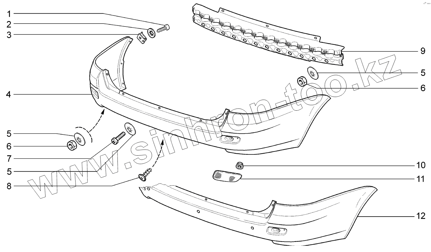 Каталог запасных частей к технике: ВАЗ LADA Priora (ВАЗ-2170). Бампер задний