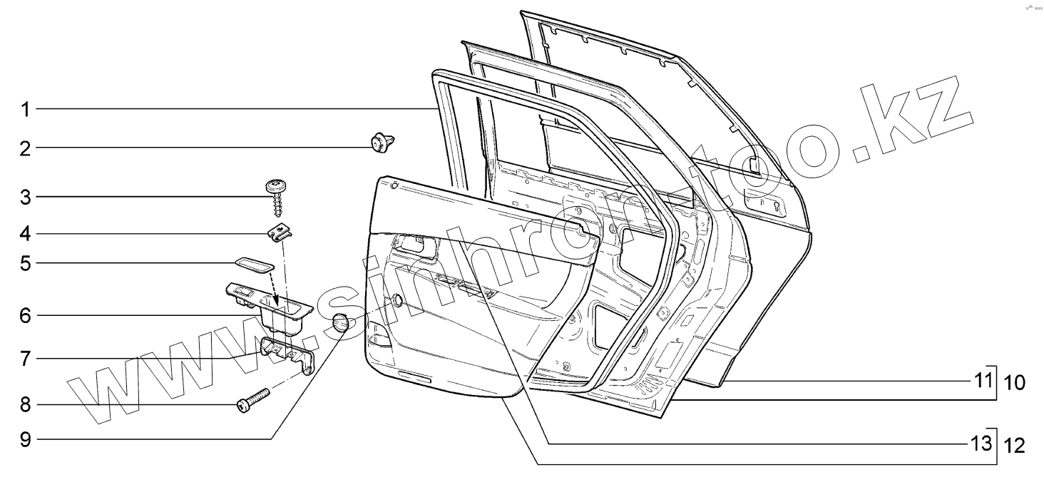 Каталог запасных частей к технике: ВАЗ LADA Priora (ВАЗ-2170). Двери задние