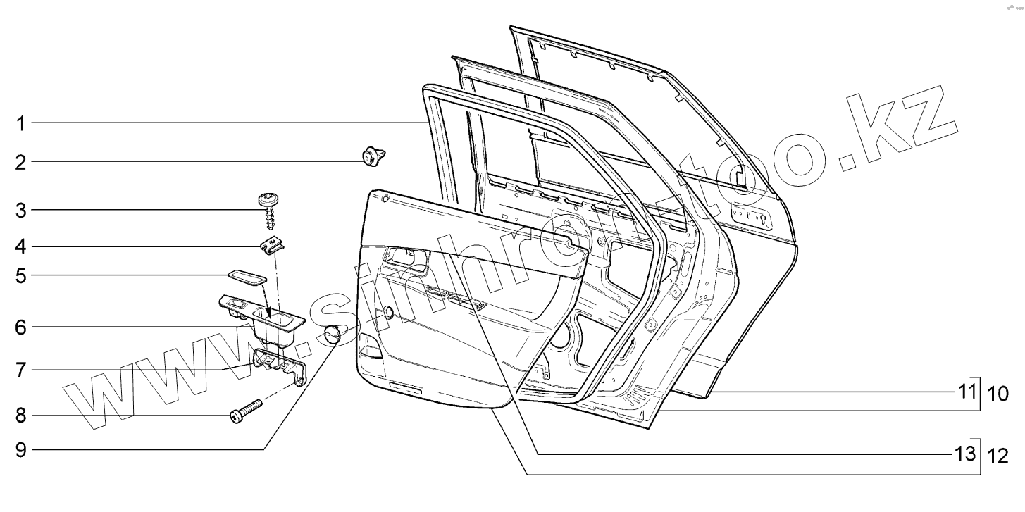 Каталог запасных частей к технике: ВАЗ LADA Priora (ВАЗ-2170). Двери задние