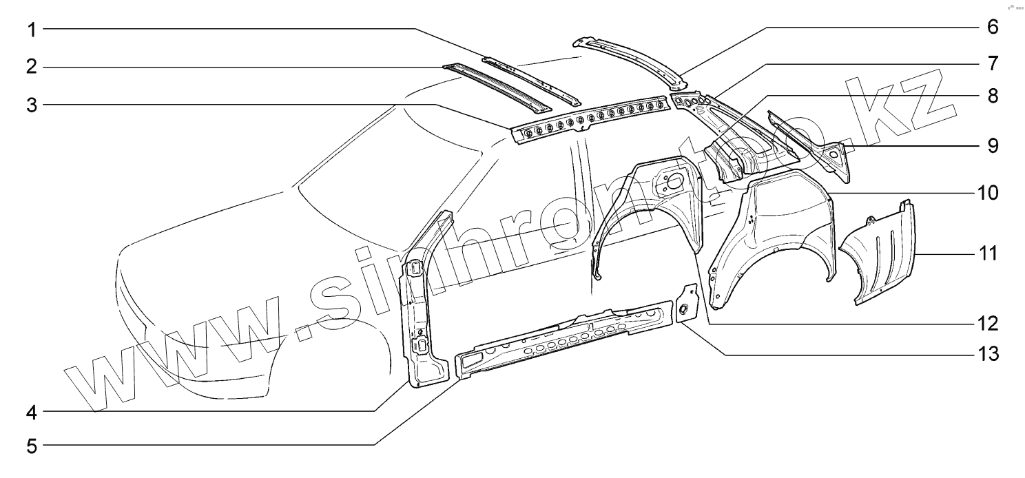 Каталог запасных частей к технике: ВАЗ LADA Priora (ВАЗ-2170). Элементы боковины и задка