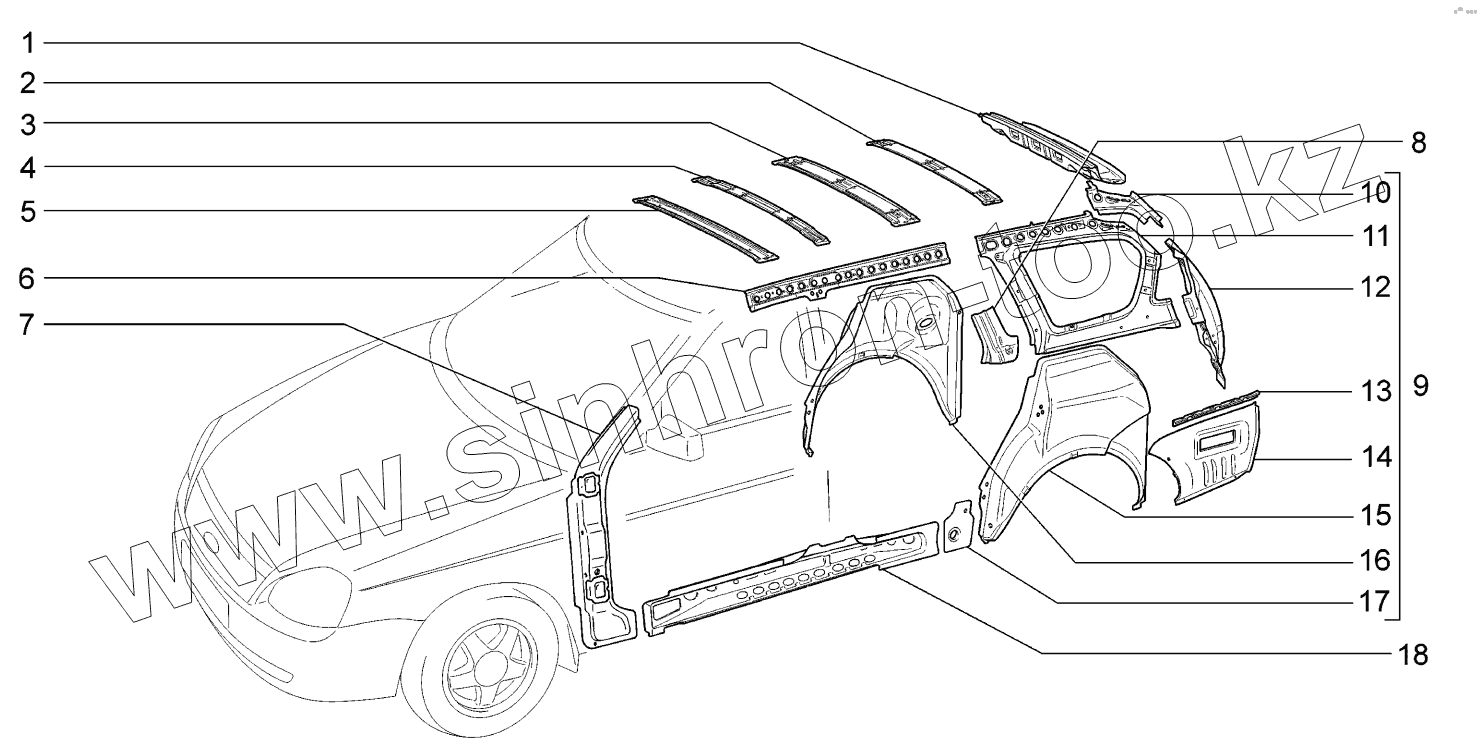 Каталог запасных частей к технике: ВАЗ LADA Priora (ВАЗ-2170). Элементы боковины и задка