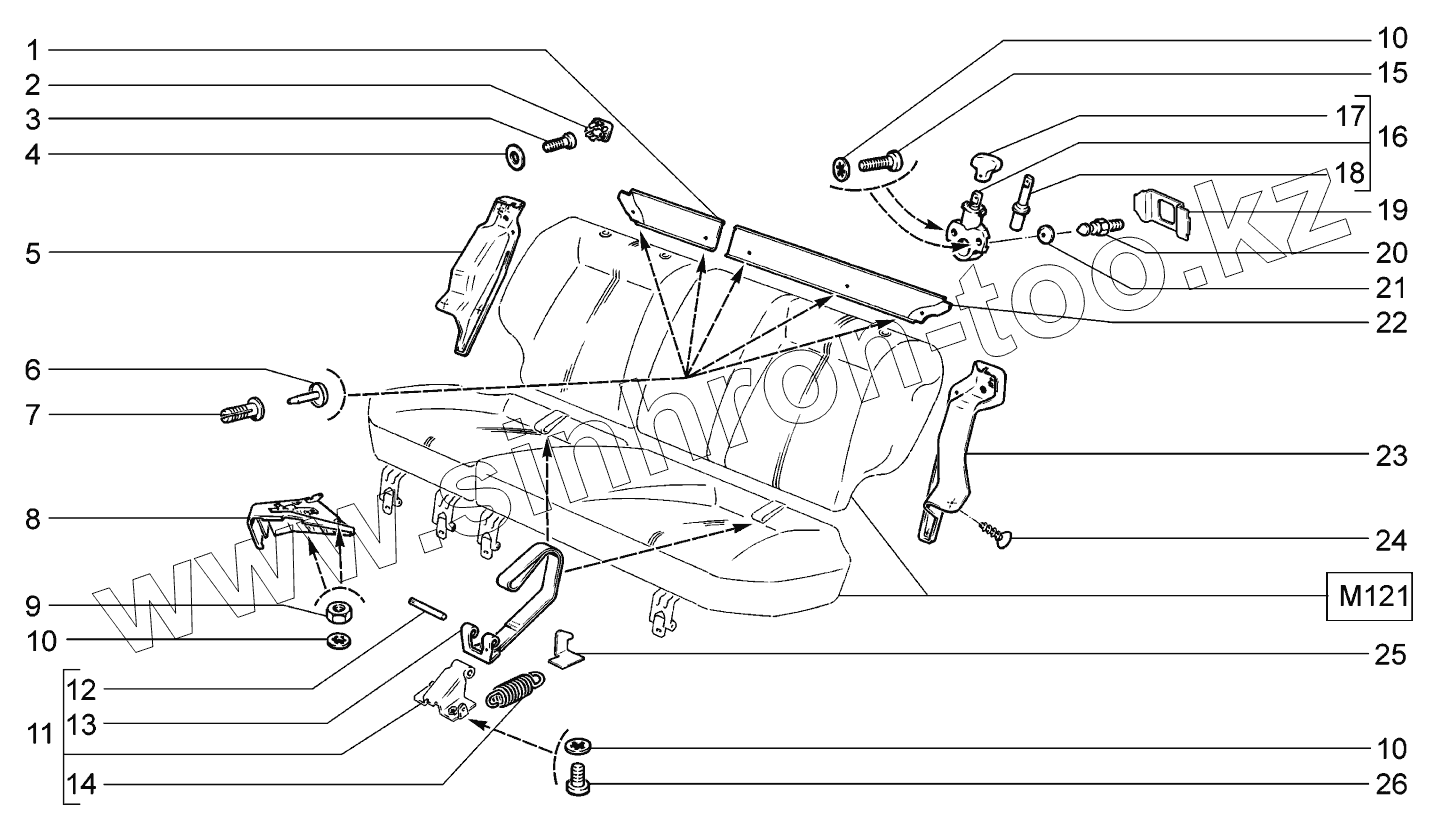 Каталог запасных частей к технике: ВАЗ LADA Priora (ВАЗ-2170). Механизм установки заднего сиденья
