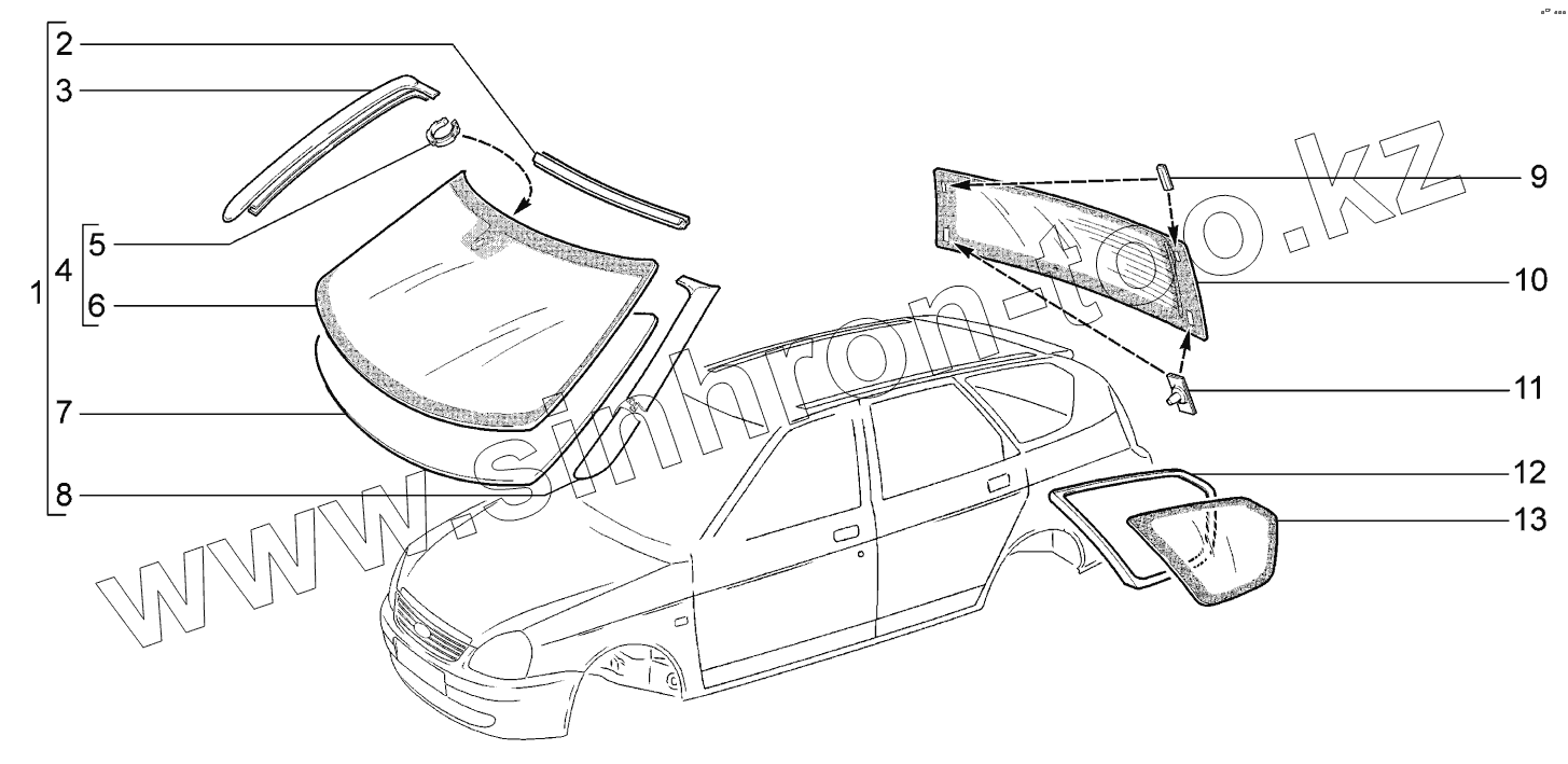 Каталог запасных частей к технике: ВАЗ LADA Priora (ВАЗ-2170). Окна