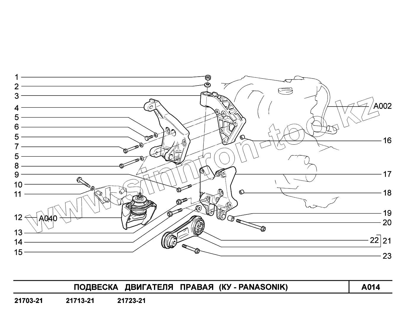 Каталог запасных частей к технике: ВАЗ LADA Priora (ВАЗ-2170). A014. Подвеска двигателя правая