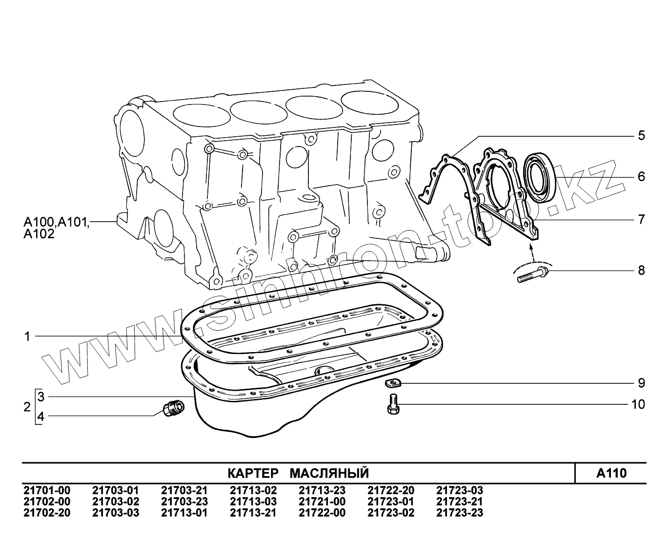 Каталог запасных частей к технике: ВАЗ LADA Priora (ВАЗ-2170). A110. Картер масляный