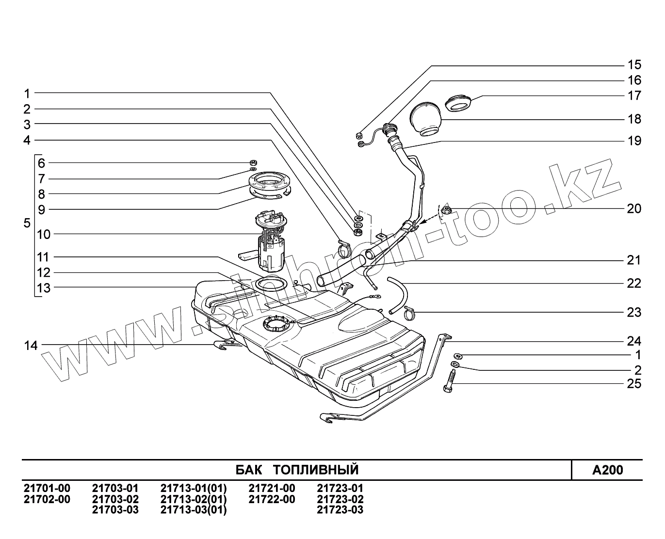 Каталог запасных частей к технике: ВАЗ LADA Priora (ВАЗ-2170). A200. Бак топливный