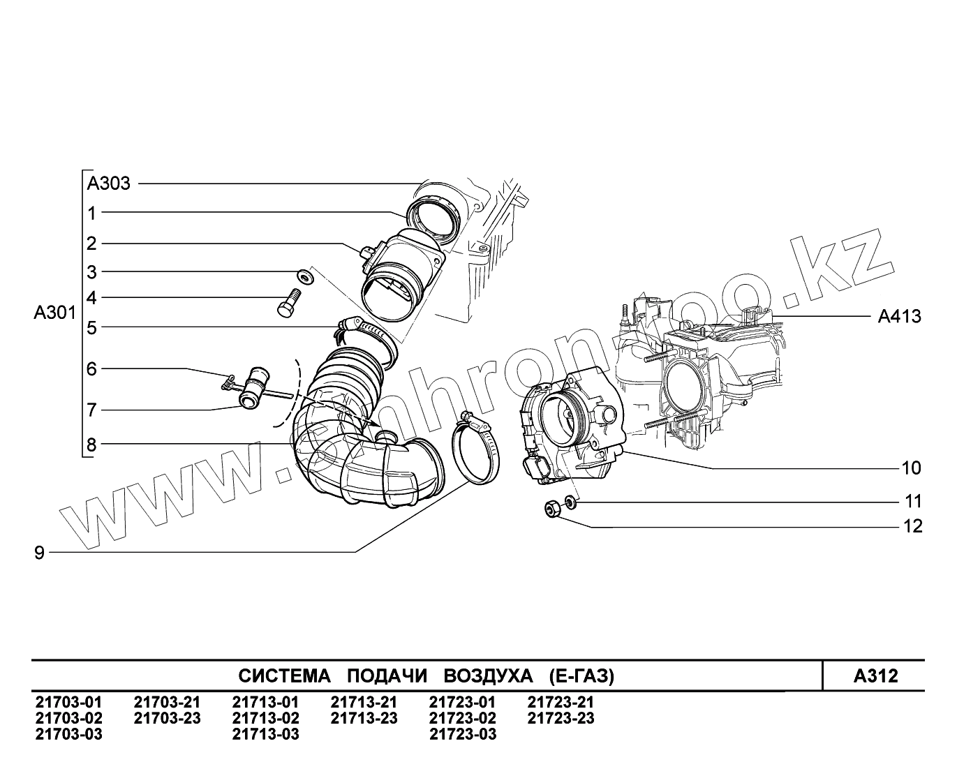 Каталог запасных частей к технике: ВАЗ LADA Priora (ВАЗ-2170). A312. Система подачи воздуха