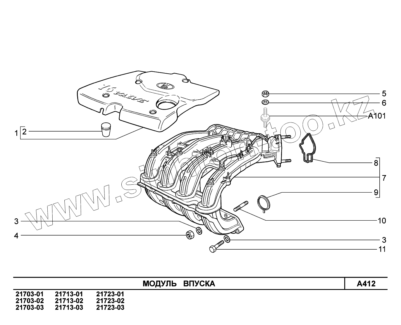 Каталог запасных частей к технике: ВАЗ LADA Priora (ВАЗ-2170). A412. Модуль впуска