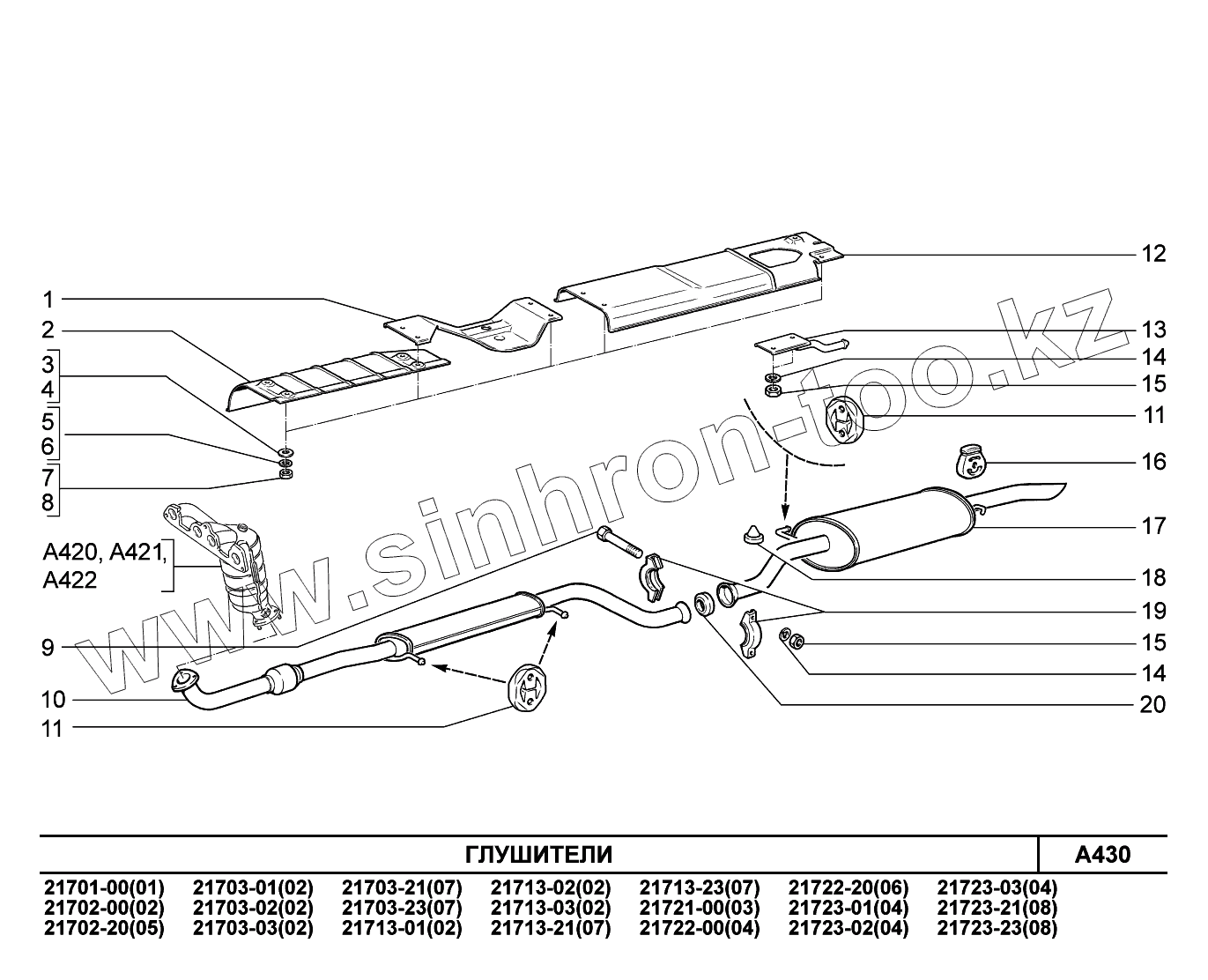 Каталог запасных частей к технике: ВАЗ LADA Priora (ВАЗ-2170). A430. Глушители