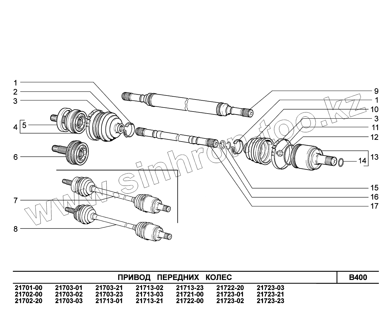Каталог запасных частей к технике: ВАЗ LADA Priora (ВАЗ-2170). B400. Привод передних колес