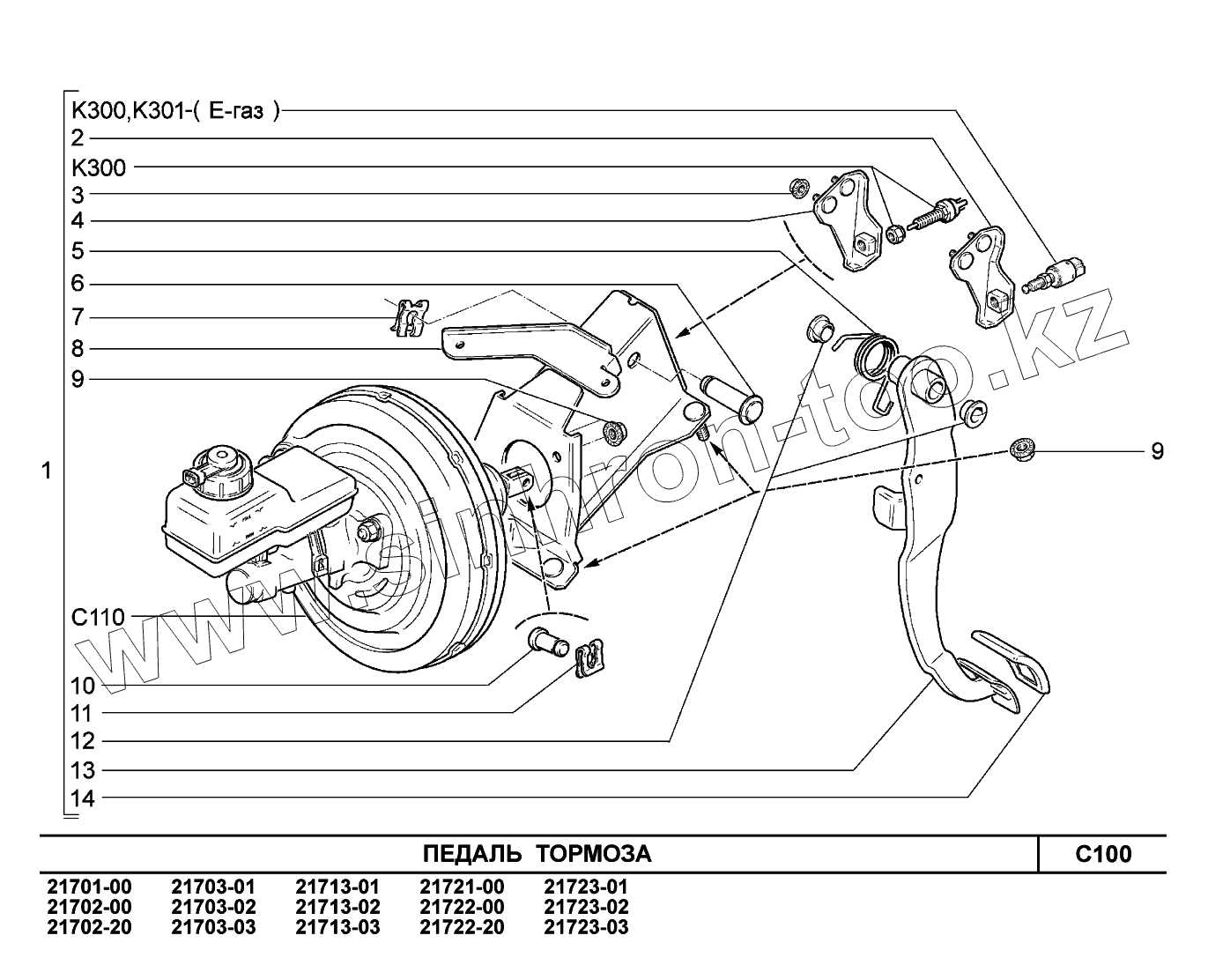 Каталог запасных частей к технике: ВАЗ LADA Priora (ВАЗ-2170). C100. Педаль тормоза
