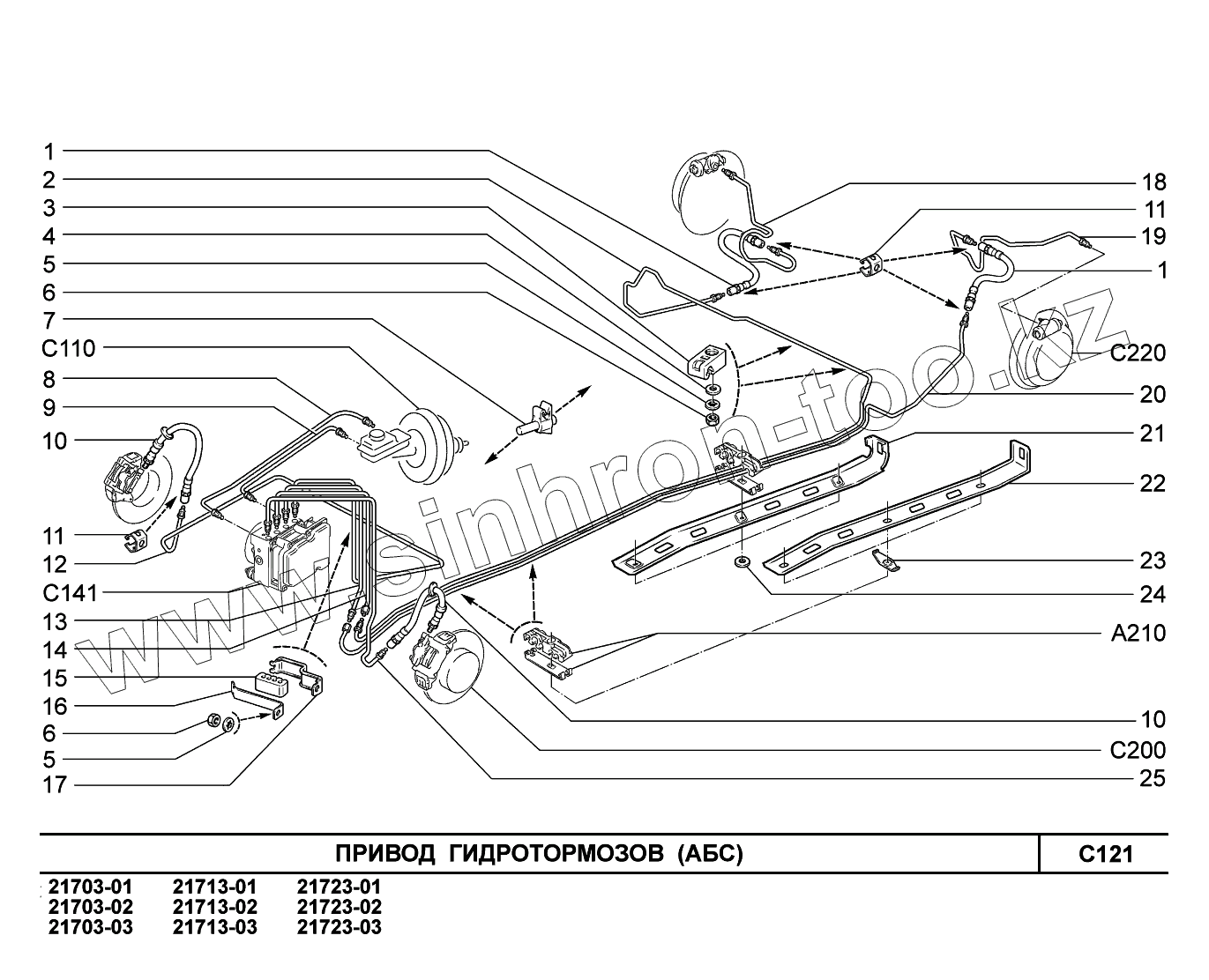 Каталог запасных частей к технике: ВАЗ LADA Priora (ВАЗ-2170). C121. Привод гидротормозов