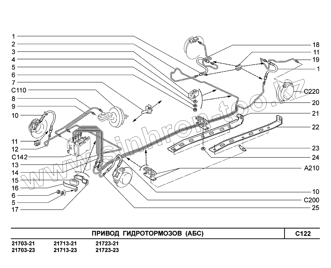 Каталог запасных частей к технике: ВАЗ LADA Priora (ВАЗ-2170). C122. Привод гидротормозов