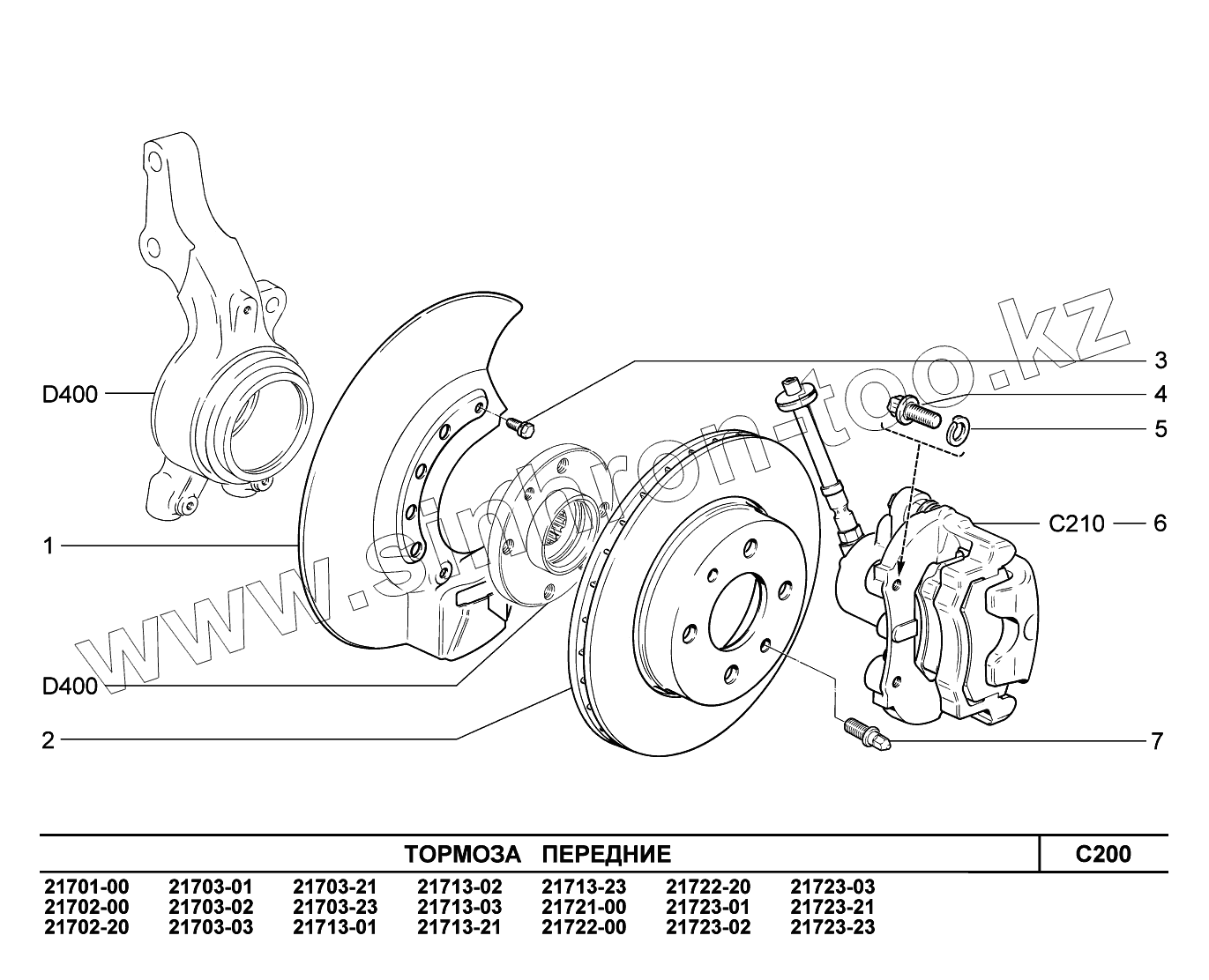 Каталог запасных частей к технике: ВАЗ LADA Priora (ВАЗ-2170). C200. Тормоза передние