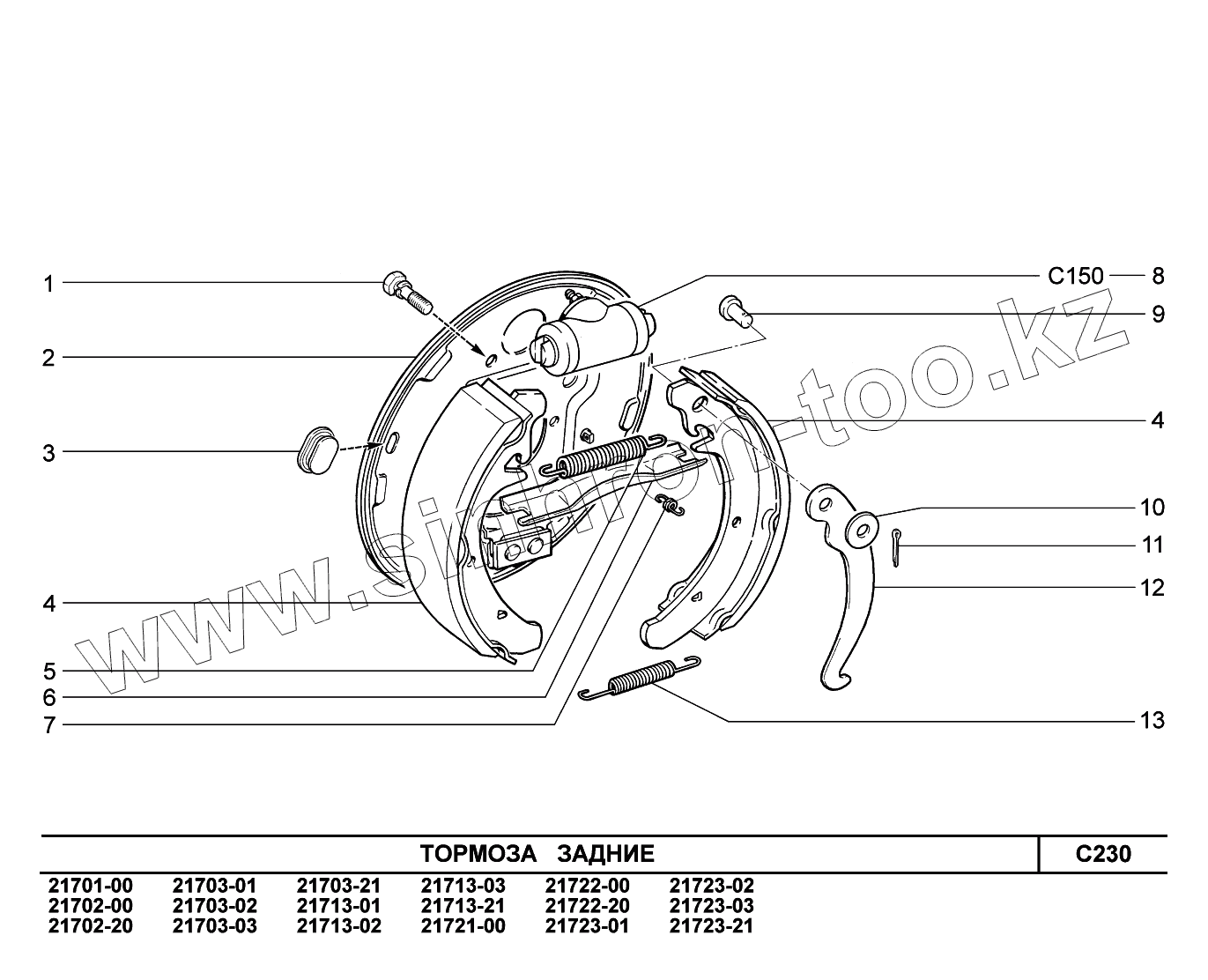 Каталог запасных частей к технике: ВАЗ LADA Priora (ВАЗ-2170). C230. Тормоза задние