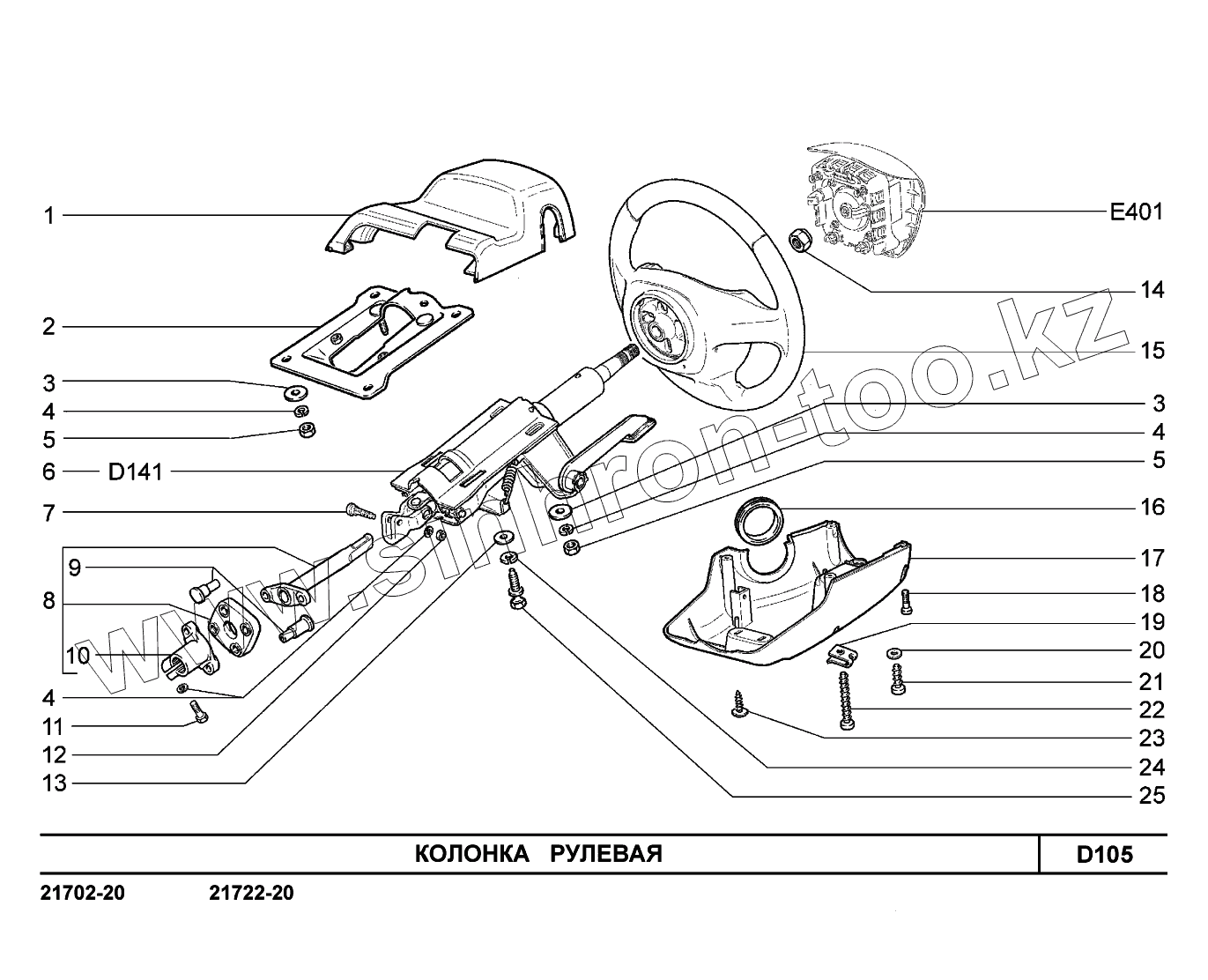 Каталог запасных частей к технике: ВАЗ LADA Priora (ВАЗ-2170). D105. Колонка рулевая