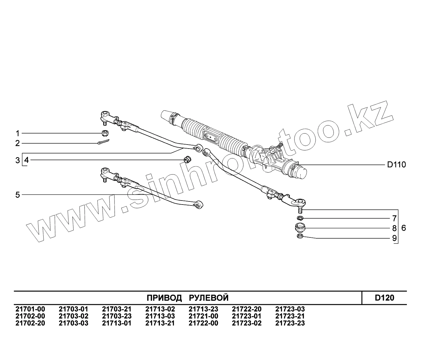 Каталог запасных частей к технике: ВАЗ LADA Priora (ВАЗ-2170). D120. Привод рулевой
